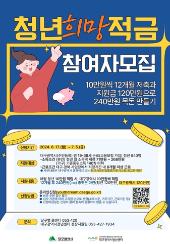 ▲ 대구광역시, 2024년 청년희망적금 참여자 모집