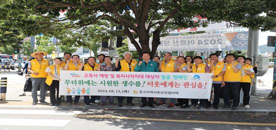 이날 동별 지역사회보장협의체 위원 등 50여명이 시원한 생수를 주민들에게 나누며 고독사 위험군 발굴 및‘복지위기 알림 앱’설치를 통해 이웃에 대한 원스톱 제보 방법도 홍보했다.