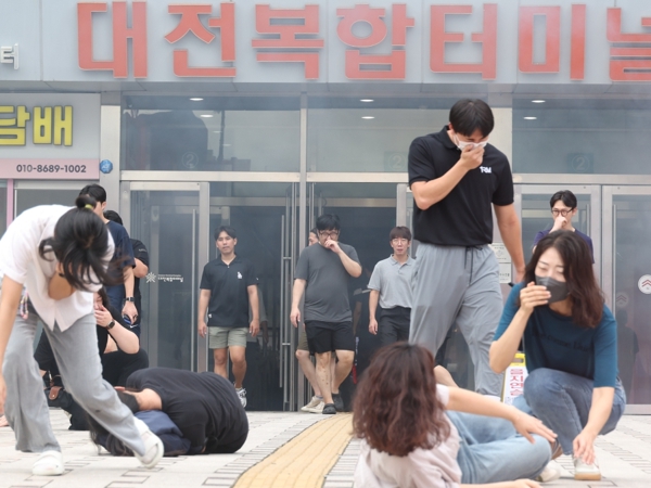 이날 훈련은 주민들이 자주 이용하는 대전복합터미널을 대상으로 폭발물을 장착한 드론테러가 발생하고, 그 폭발물에 의해 신원 미상의 유독가스가 살포되는 화생방 상황을 설정해 민·관·군·경·소방 참가 요원들이 주민의 생명과 재산 보호를 책임지는 훈련으로 진행됐다.
