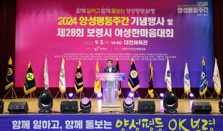[뉴스서치] 보령시는 양성평등주간(9.1.∼9.7.)을 맞아 5일 대천체육관에서 <함께 일하고 함께 돌보는 양성평등 보령>을 슬로건으로 2024년 양성평등주간 기념식 및 제28회 보령시 여성한마음 대회를 개최했다.