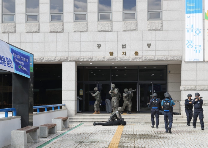 이날 훈련은 적 테러범 2명이 어울아트센터 함지홀에 침투하여인질극과 총격전을 벌이는 상황으로 전개됐다.