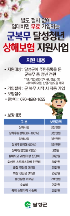 | ▲ 달성군 ‘군복무 달성청년 상해보험’ 최대 3천만 원 무료 지원 |
