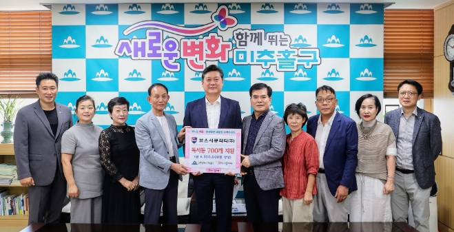 ▲ 보스시큐리티(주), 미추홀구에 휴대용 조명등 700개 전달해 |