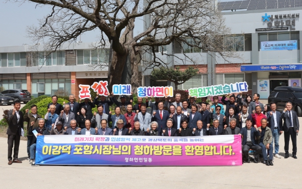 [뉴스서치] 포항시는 18일 청하면 행정복지센터에서 이강덕 포항시장을 비롯해 지역구 도·시의원, 자생단체장, 지역주민 등 100여 명이 참석한 가운데 ‘시민 공감·소통의 날’ 행사를 개최했다.