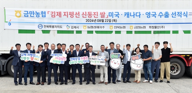 [뉴스서치] 김제시는 22일 금만농협 미곡종합처리장에서 김제 지평선쌀을 미국으로 수출하는 선적식을 가졌다고 밝혔다.