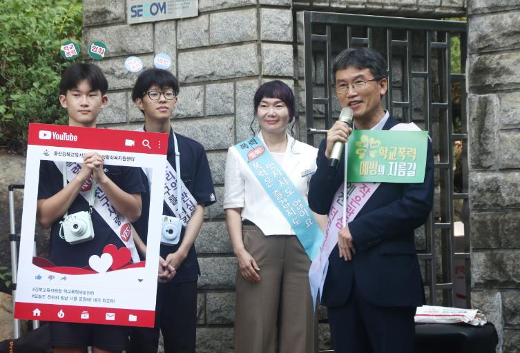 이날 행사에는 천창수 교육감을 비롯해 울산제일중 학생자치회 학생, 강대길 시의원, 홍영진 중구의원, 울산중부경찰서 학교전담경찰관(SPO)과 태화지구대 관계자, 울산청소년상담복지센터 상담사 등 100여 명이 참가했다.