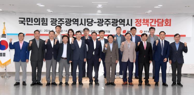 광주광역시는 국민의힘 광주광역시당과 23일 시청 중회의실에서 정책간담회를 개최, 인공지능전환(AX) 실증밸리 조성, 복합쇼핑몰 교통 기반시설 신속 확보 등 주요 현안을 논의했다.