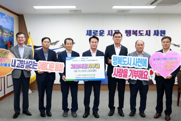 이번 기부는 사천시 7개(사천, 정동, 사남, 용현, 서포, 삼천포, 사천시지부) 농협과 김해시 3개(김해, 주촌, 부경원예) 농협 임직원 200명이 뜻을 모은 것으로 사천시와 김해시에 고향사랑기부금 1000만 원씩 각각 기탁한 것이다.