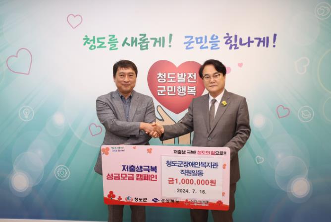 [뉴스서치] 청도군 장애인복지관 직원 일동은 16일 저출생 극복 성금 100만원을 청도군에 전달했다.