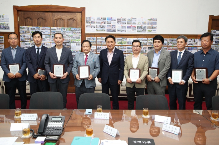 감사패 수여대상자는 서울시상인연합회(회장 추귀성), 울산시상인연합회(회장 손병길), 태아산업(대표 홍익기), 젠스필드CC(대표 이상균), 솥뚜껑생선구이(대표 이성기), 한국마트(대표 김영석), 청주종합물류(대표 김학원) 등 8명으로, 김영환 충북도지사 직접 감사패를 전달했다.