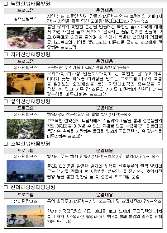 ▲ 『숲 속 결혼식』 생태관광 프로그램 현황 |