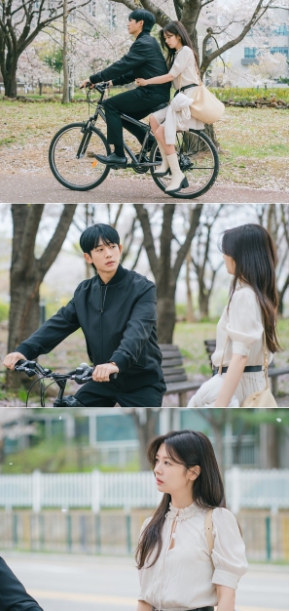 '엄마친구아들' 정해인X정소민, ‘어색+설렘’ 벚꽃길 자전거 데이트 포착