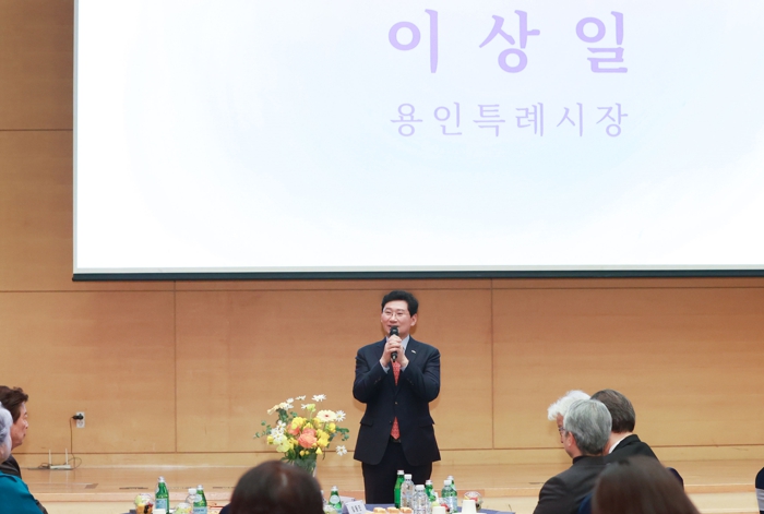 ▲ 지난 26일 용인특례시 문화원에서 열린 '제42회 대한민국연극제 용인' 홍보대사 위촉식에서 축사하고 있는 이상일 용인특례시장 |