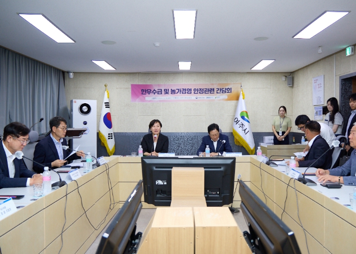 한편 이날 간담회에는 송미령 장관과 김선교 국회의원, 농협경제지주 축산경제대표, 전국한우협회장 등 축산단체장과 경기도 축산동물복지국장과 경기도의회 서광범 의원, 여주시의회 박두형 의장 등 관계자가 참석한 가운데 어려움을 격고 있는 한우농가의 경영 상황을 청취하고 수급안정 대책에 대해 의견을 나누는 시간을 가졌다.
