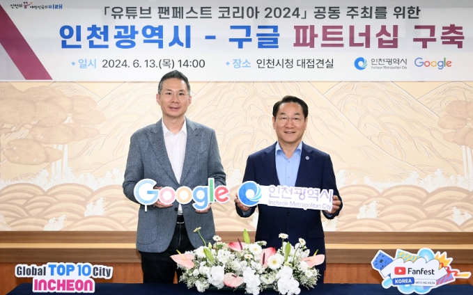 [뉴스서치] 인천광역시와 구글은 6월 13일 시청 대접견실에서 글로벌 이벤트'유튜브 팬페스트 코리아 2024'행사의 공동 마케팅 협력을 위한 파트너십을 구축했다.