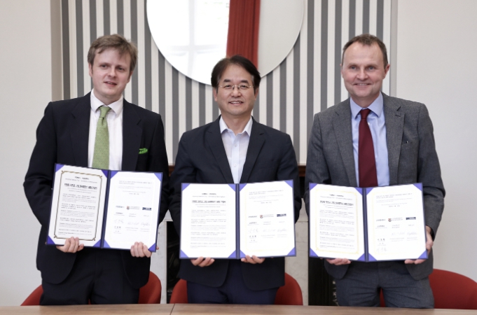 ▲ ‘고양시-영국 버밍엄대학 국제캠퍼스 설립 의향서 체결’, 이동환 고양시장(가운데)과 아담 티켈(Adam Tickell) 버밍엄대학 총장(우) |