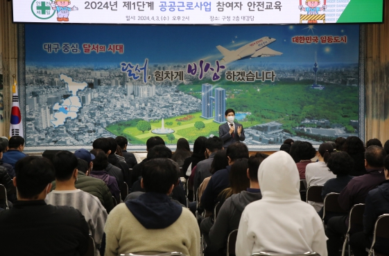 [뉴스서치] 대구 달서구가 지난 3일 구청 2층 대강당에서 2024년 제1단계 대구형 희망플러스 일자리사업(공공근로) 참여자 146명을 대상으로 안전교육을 실시했다.