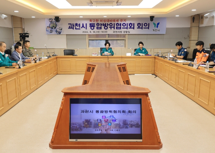 [뉴스서치] 과천시는 14일 시청 상황실에서 신계용 과천시장을 의장으로, 민·관·군·경 등 통합방위협의회 위원 10여 명이 참석한 가운데, ‘2024년 3분기 통합방위협의회’를 개최했다.