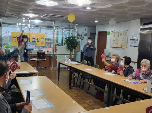 교재를 활용한 손씻기 교육, 손씻기 실습, 오염도 측정기를 통한 종사자 손 오염 확인 등 교육에서 오엑스(OX) 퀴즈, 미술도구를 활용해 어르신들의 적극적인 참여를 이끌어 내고 있다.