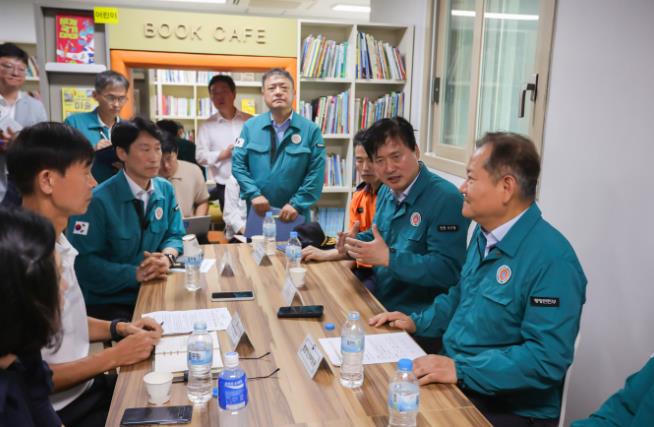 이어서 열린 간담회에서는 서구청장, 아파트 관리소장, 입주자대표 회장 등이 참석한 가운데 피해 주민들을 위로하며 애로사항을 청취했다.
