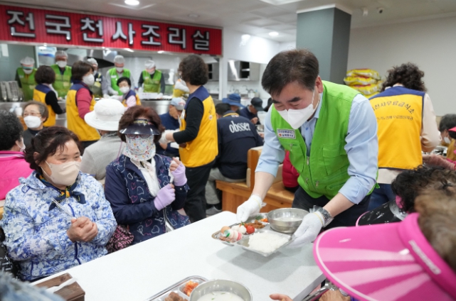 김영욱 부산진구청장은 “천사 무료급식소 배식봉사를 하면서 체계적인 운영과 맛있는 식단에 두 번 놀랐다”라며 “아침을 대접하기 위해 더 일찍 나와 식재료를 챙기고 음식을 준비해 주신 모든 봉사자들의 노고에 다시 한번 감사의 말씀을 전하며, 가정의 달을 맞이하여 모든 분들이 건강하고 행복하길 바란다”라고 말했다.