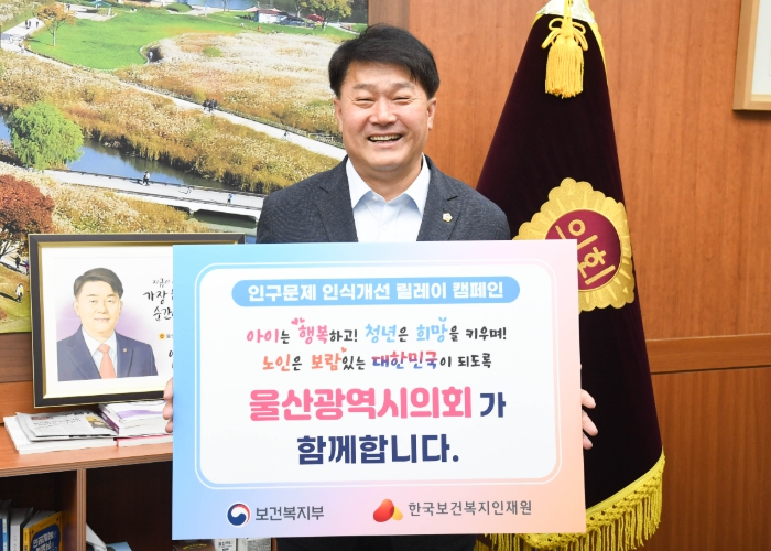 이 의장은 “인구감소와 고령화 문제는 지속가능한 삶을 위해 우리 사회가 함께 고민하고 관심 가져야 할 중요한 과제”라며 “이번 캠페인을 통해 인구문제에 대한 사회적 공감대가 확산되길 바란다. 울산시의회에서도 인구감소와 고령화 문제를 극복하기 위해 적극적인 관심과 노력을 아끼지 않겠다”고 밝혔다.