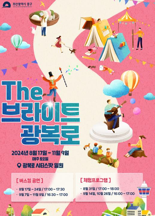 [뉴스서치] 부산 중구는 오는 8월 17일부터 11월 9일까지 광복로에서‘The 브라이트 광복로’를 운영한다고 밝혔다.