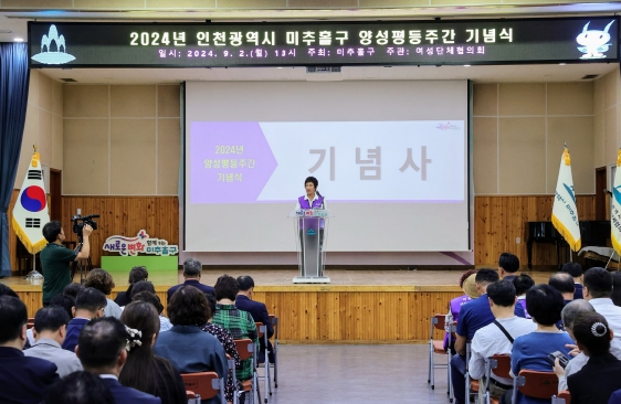 [뉴스서치] 인천 미추홀구는 2일 구청 대회의실에서 여성단체협의회와 공동으로 제29회 양성평등주간 기념식을 개최했다.