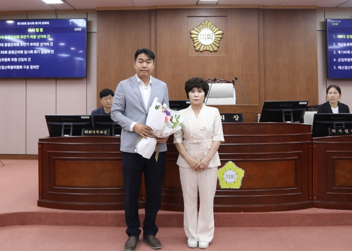조윤성 신임 의장은 “의장으로서 막중한 책임감을 갖고 군민의 목소리를 군정에 담아내고 지역발전과 주민의 복리증진을 최우선 과제로 삼아 열심히 일하는 의회로 거듭나겠다”며 “집행부와의 관계에서도 균형 잡힌 견제와 협력을 통해 의회 본연의 역할에 최선을 다하겠다”고 소감을 밝혔다.