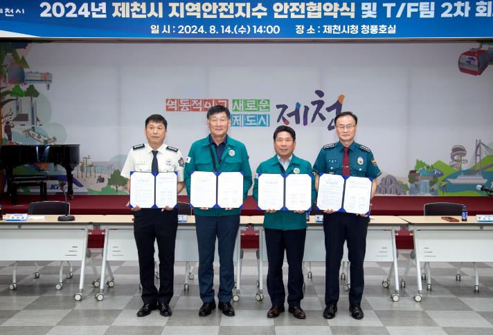 이번 협약식에는 김창규 제천시장, 박영기 제천시의회의장, 임경호 경찰서장, 윤명용 소방서장이 참석하여 제천시의 안전을 위한 업무협력 및 역량강화를 골자로 하는 협약서에 공동 서명을 하고, 시민들이 안심할 수 있는 안전한 도시 만들기에 총력을 다하기로 뜻을 모았다.