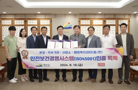 [뉴스서치] 예산군은 전국 지자체 최초로 전 조직(본청, 직속기관, 사업소, 읍면 행정복지센터)을 대상으로 안전보건경영시스템(ISO 45001)인증을 획득했다고 밝혔다.