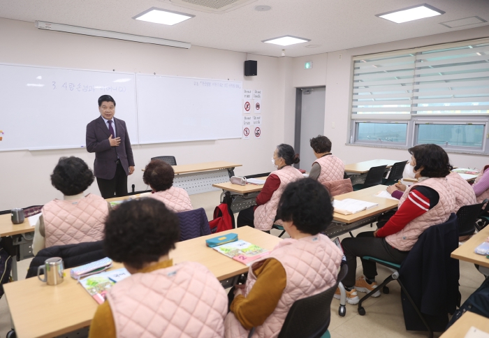 이날 이 군수는 고령의 나이에도 배움에 대한 열정으로 교육에 참여하고 있는 어르신들에게 존경의 마음을 전하고 학습 애로사항 등을 청취했다.