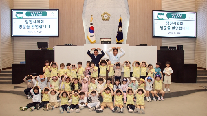[뉴스서치] 당진시 수청초등학교 병설 유치원생들은 지난 3일 당진시의회를 방문해 김덕주 시의장과 만남을 갖고 본회의장과 의회도서관 등 시의회 시설을 견학했다.