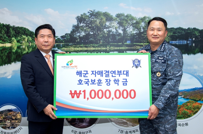 [뉴스서치] 제천시는 최근 해군 잠수함사령부 자매결연부대가 김창규 제천시장을 예방하고 장학금 100만원을 전달했다고 지난 3일 밝혔다.