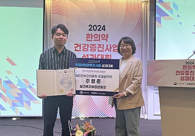 태안군은 보건복지부의 ‘2023년도 한의약 건강증진 사업 평가’ 결과 경로당 순회 한방주치의 사업이 우수사례로 선정됨에 따라 6일 서울 강남구 소노펠리체컨벤션 사파이어홀에서 열린 ‘2024년 한의약 건강증진 사업 성과대회’에서 주형준 공중보건의가 보건복지부장관 표창을 받았다고 밝혔다.