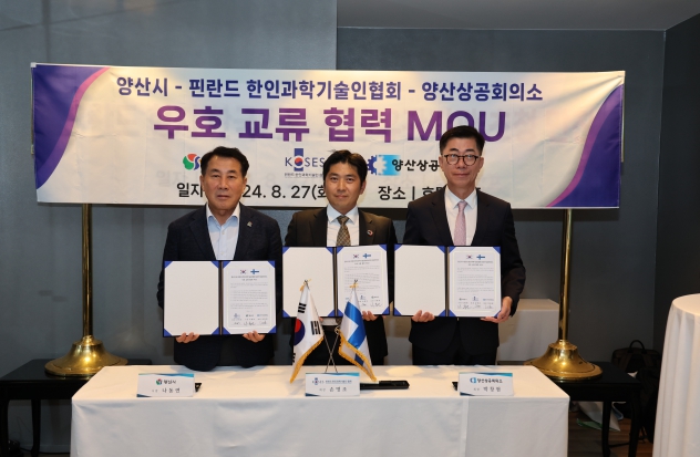 나동연 양산시장은 26일 현지 수출 유관기관과의 협력관계 구축을 위해 오슬로 시 비즈니스 지역부 국장을 만났고, 27일에는 주 핀란드대한민국대사, 헬싱키 시장과의 면담을 진행하며 관내 기업의 현지 진출 가능성에 대해 면밀히 파악하는 한편, 북유럽 시장 개척을 위한 적극적인 협조를 당부했다. 특히 핀란드한인과학기술인협회와의 MOU 체결을 통해 양국 간 과학기술 협력을 강화하고 실질적인 협력 방안을 모색했다.