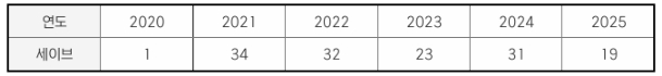 6월 24일 현재 19세이브로 세이브 부문 리그 3위에 올라있는 정해영은, 21세이브를 기록하고 있는 박영현(KT)과 20세이브의 김원중(롯데)을 바짝 추격하고 있다. 정해영은 2024시즌 31세이브를 올리며 KBO 리그 세이브상을 수상한 바 있다.