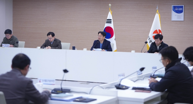 | ▲ 강기정 광주광역시장이 윤석열 대통령 탄핵소추안 국회 가결에 따라 지난 15일 긴급 간부회의를 주재하고 민생 안정 대책을 신속히 추진할 것을 지시하고 있다. |