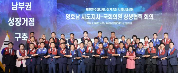 [뉴스서치] 전라남도는 30일 영호남 시도지사 협력회의가 서울 한국경제인협회(FKI타워 컨퍼런스센터)에서 지역 국회의원 초청 상생협력 회의를 개최하고, 영호남 균형발전을 위한 협력을 다짐했다고 밝혔다.
