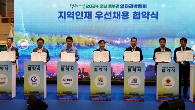 이날 열린 동부권 일자리 박람회에는 김영록 지사와 기업 대표자를 비롯해 구인・구직자 등 1,000여 명이 참석했으며, 지역인재 우선채용 협약식과 포퍼먼스, 행사장 라운딩 순으로 진행됐다.