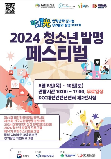 특허청이 주최하고 한국발명진흥회가 주관하는 '2024 청소년 발명 페스티벌'이 오는 8월 8일(목)부터 10일(토)까지 3일간대전컨벤션센터(대전시 유성구)에서 개최된다.