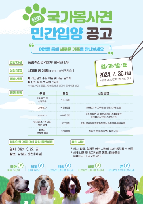 ▲ 은퇴 국가봉사견 입양 공고 포스터 |