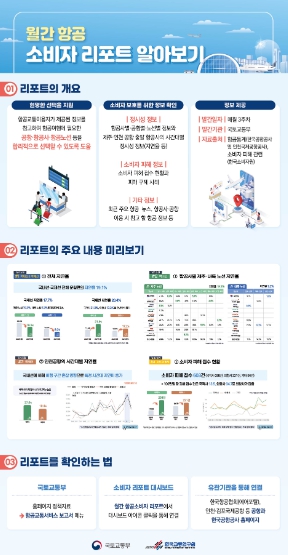국토교통부는 항공권 구매 등 소비자 선택에 도움이 될 수 있도록 정부가 보유하고 있는 항공 정시성 정보 등 다양한 정보를 담은 항공소비자 리포트를 창간했다.