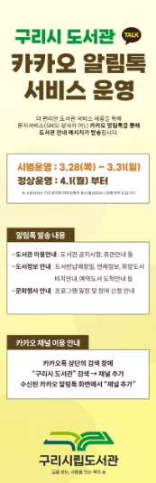 ▲ 구리시, 시립도서관 카카오 알림톡 서비스 개시 |