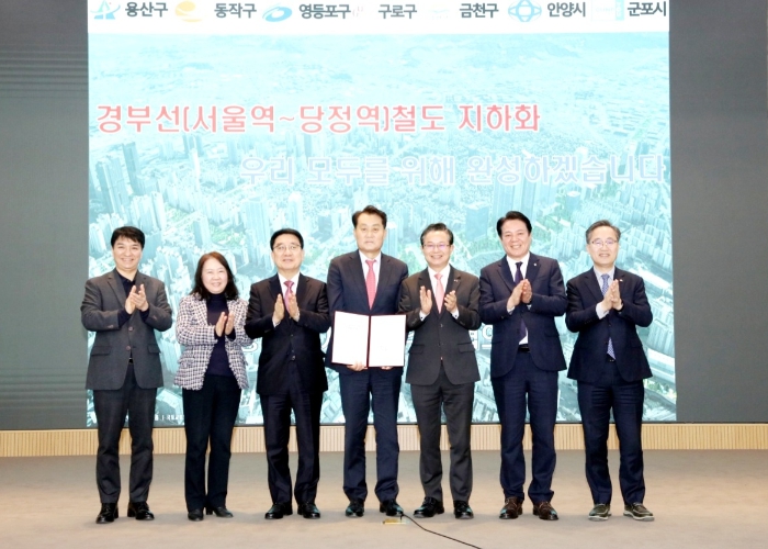 안양시과 용산구, 동작구, 영등포구, 구로구, 금천구, 군포시는 이날 14시 군포시청 대회의실에서 ‘경부선(서울역~당정역) 지하화 선도사업 선정 공동 건의문’에 서명했다.