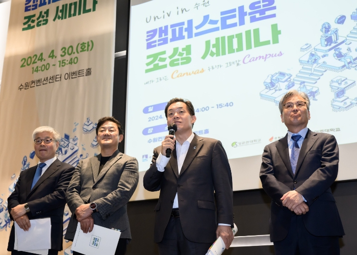 이재준 수원시장은 “수원에 있는 5개 대학 캠퍼스 면적을 합하면 15만㎢에 이르고, 학생 수는 5만 명에 이른다”며 “수원시와 대학이 연계해 ‘캠퍼스타운’을 조성하면 대학도 발전하고, 수원도 발전할 수 있을 것”이라고 기대했다.