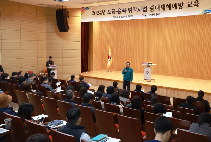 [뉴스서치] 울산 동구는 3월 20일 도급·용역·위탁사업 사업자 및 담당 직원을 대상으로 도급·용역·위탁사업 중대재해예방 교육을 실시했다.