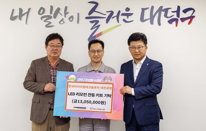 [뉴스서치] 대전 대덕구는 한국타이어앤테크놀로지 대전공장(주)으로부터 지역 취약계층과 장애인 가구를 위한 리모컨 조절 LED 전등과 리모컨, 콘센트(1305만원 상당)를 기탁받았다고 밝혔다.