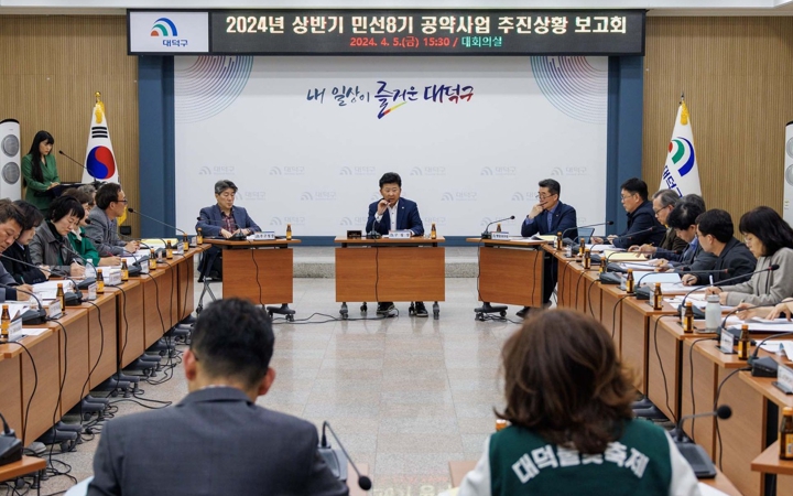 대덕구는 지난 5일 구청 대회의실에서 최충규 대덕구청장 주재로 국, 소, 원장, 부서장 등 관계자 27명이 참석한 가운데 ‘민선 8기 공약사업 추진 상황 보고회’를 개최했다고 밝혔다.