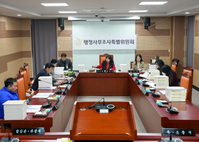 | ▲ 아산시의회 행정사무조사 특별위원회가 「아산시 소규모 도시개발 실무종합 심의운영」과 관련하여 제6차 회의를 진행하고 있다. |